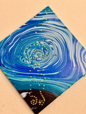 Jasmine: Rhinestone Embellished Abstract Wall Art – 16×16 – Acrylic Pour Handmade Painting